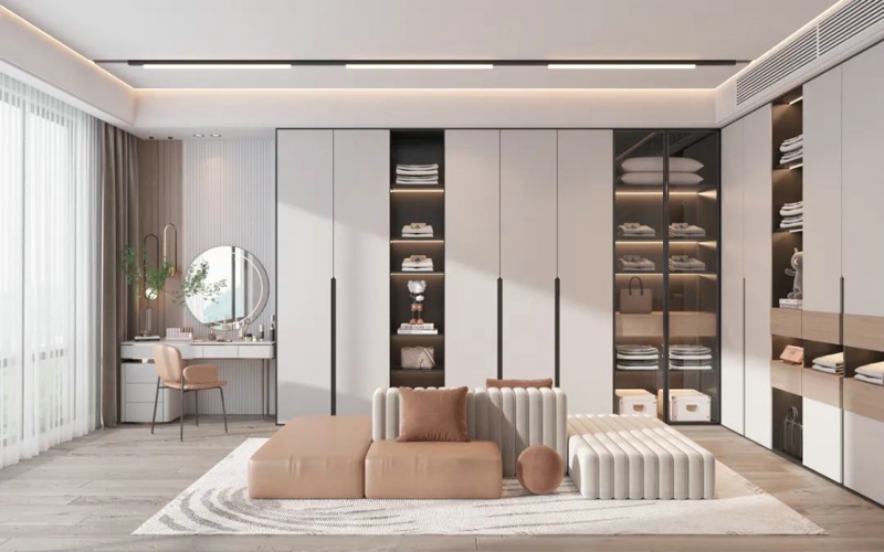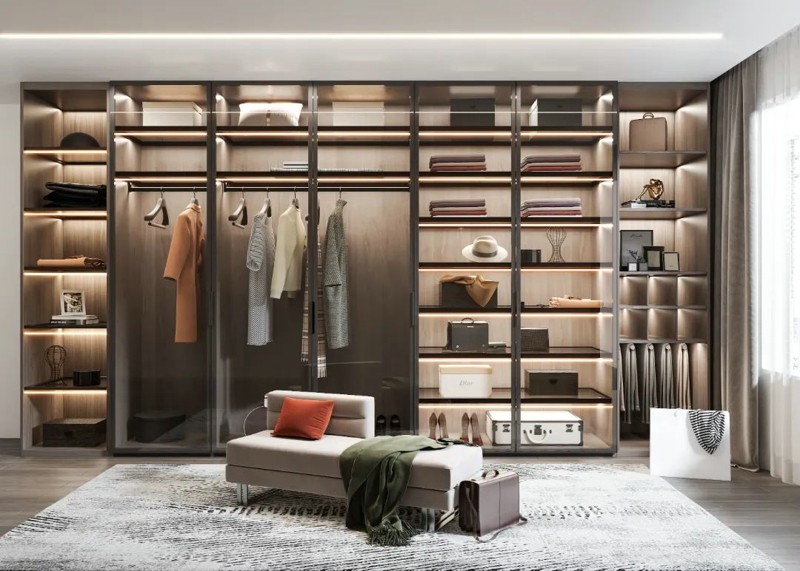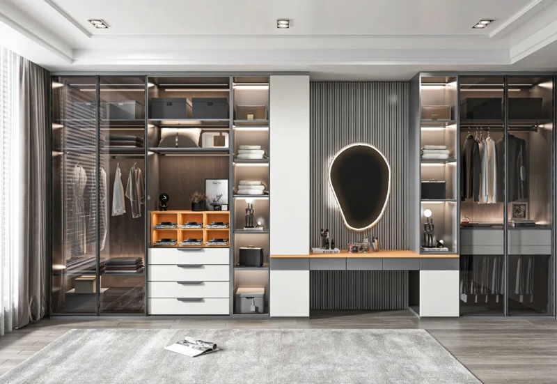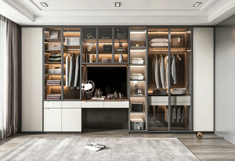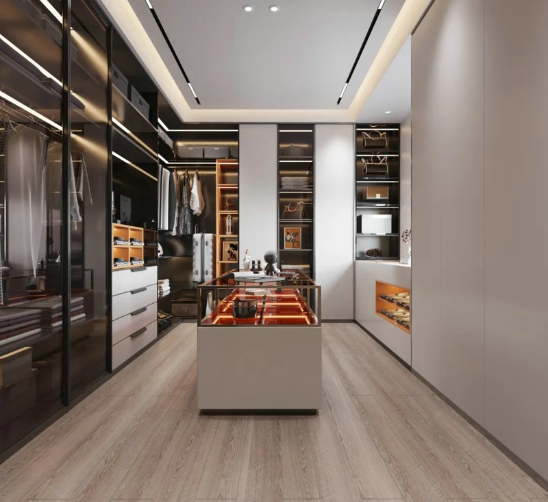 擁有足夠收納,可懸掛的衣架與儲(chǔ)物柜結(jié)合,燈帶的設(shè)計(jì),每一個(gè)格子都有它專屬的物品擺放。