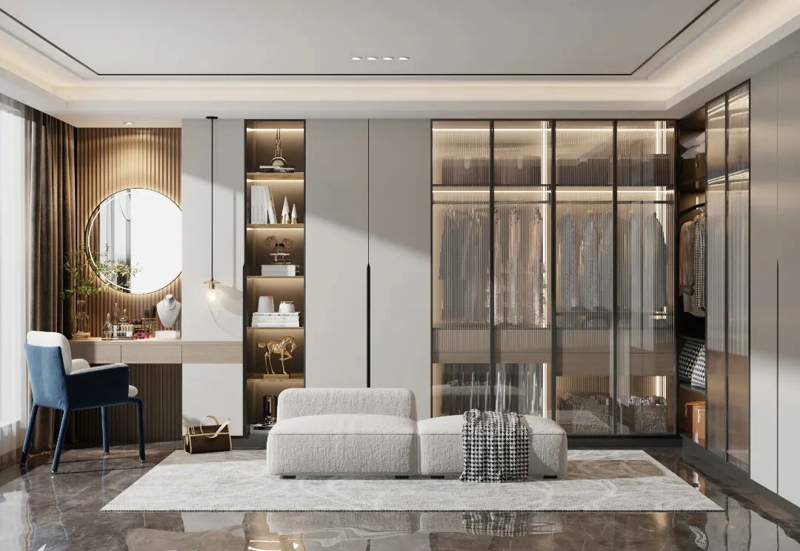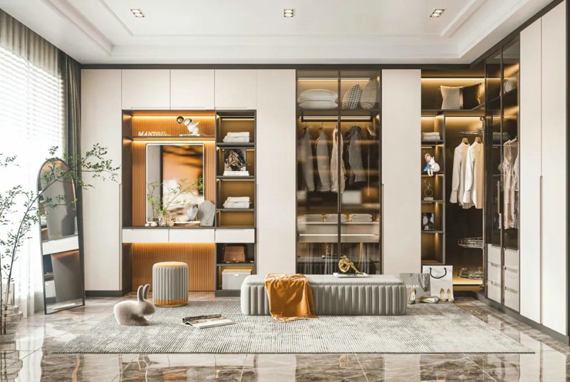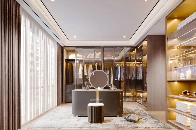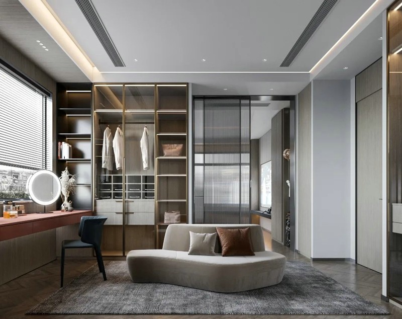設(shè)計(jì)師注重開發(fā)實(shí)用的功能性,步入式衣帽間憑借優(yōu)質(zhì)的炫彩和貼心的功能設(shè)計(jì),將各類服飾收納其中,帶來極佳的視覺效果,打造精致又有序的儲(chǔ)物空間。