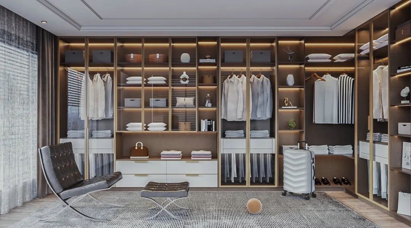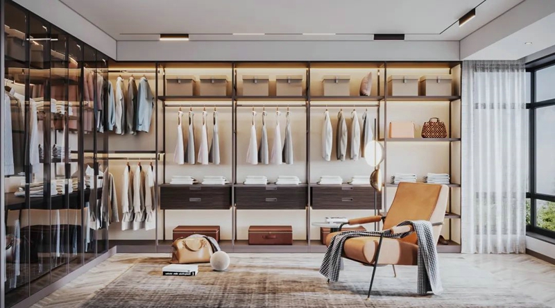 隨著人們生活質(zhì)量不斷提高,幾乎每個(gè)人都擁有幾十件甚至更多的衣服,這些款式、質(zhì)地不同的服裝的累積,人們開始對(duì)其進(jìn)行分類收納,因此衣帽間正逐步成為每個(gè)家庭空間中不可或缺的一部分。
