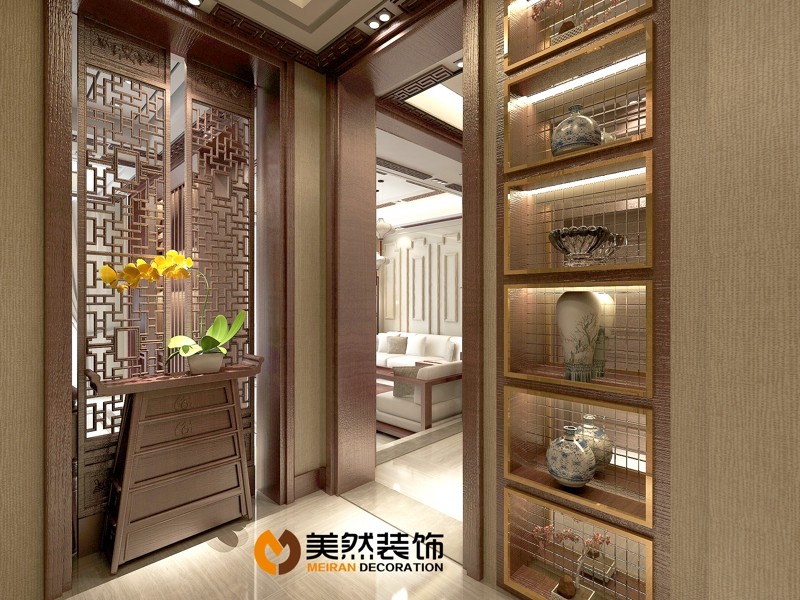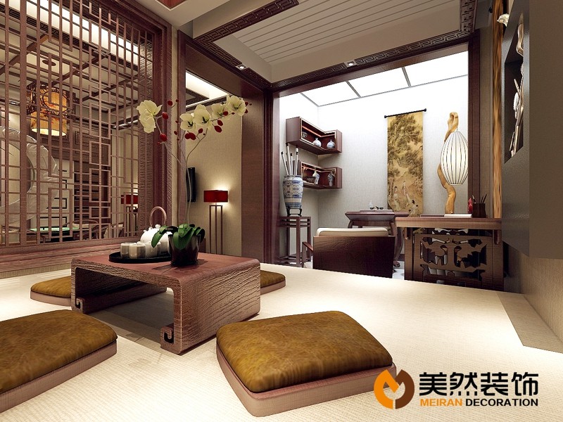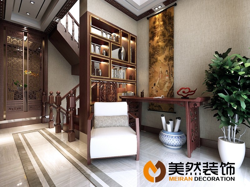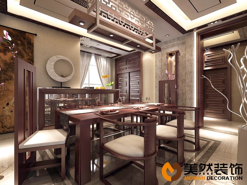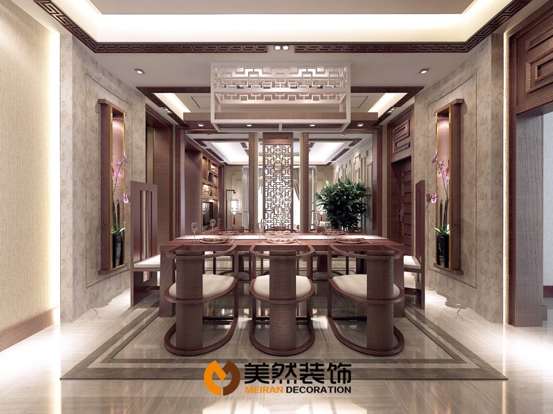 本案追求高雅簡(jiǎn)潔卻又低調(diào)的淡雅氣質(zhì)。這是一個(gè)三層的別墅,一層是起居室和餐廳,二層則是設(shè)計(jì)作為十分私密的私人空間,是主人家的臥室和主要活動(dòng)空間,生活得精致通常是以舒適作為基本,然后是周到。地下一層是娛樂(lè)空間。運(yùn)用現(xiàn)代東方主義設(shè)計(jì),以耐人尋味的紅胡桃色作為主背景,一改往日繁瑣冗雜的修飾手法,用沉穩(wěn)的筆觸勾勒出溫婉典雅氣質(zhì),糅合空間的色調(diào),一切仿佛渾然天成。相近色系完美的跳躍搭配使得空間有著優(yōu)雅的變化,隨處都展示著主人超脫的審美觀和悠閑淡然的氣質(zhì)